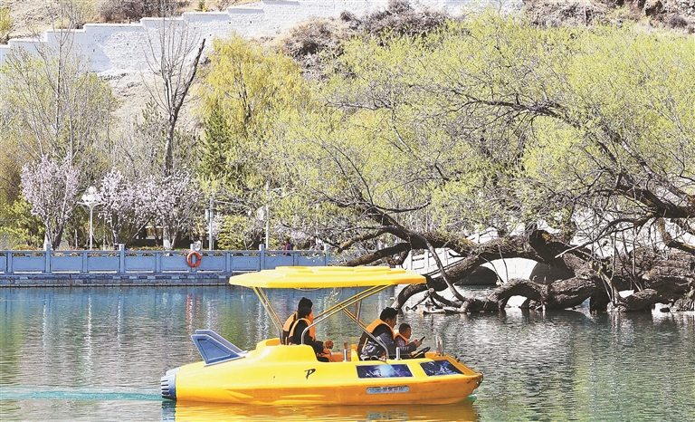市民在宗角禄康公园划船。记者 旦增兰泽 摄