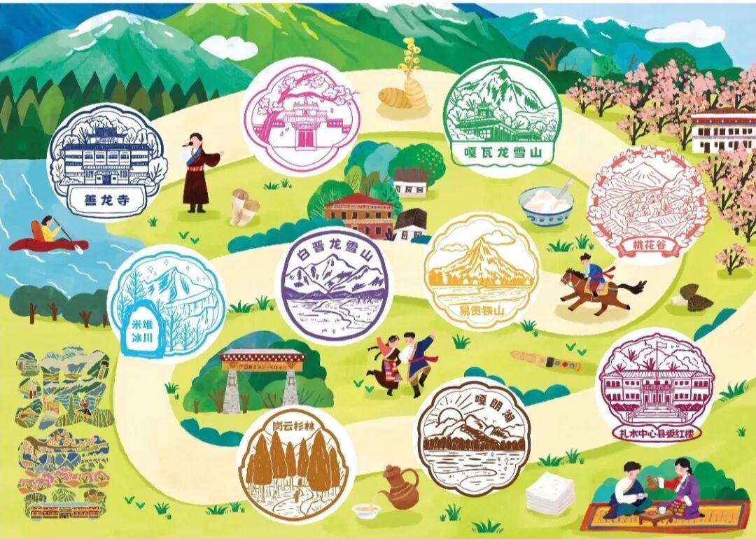 在米堆冰川、岗云杉林、嘎朗湖、白普龙等景区领取《打卡集章手册》,集齐印章即可兑换波密定制文创(非遗笔记本、红楼拼图等)!