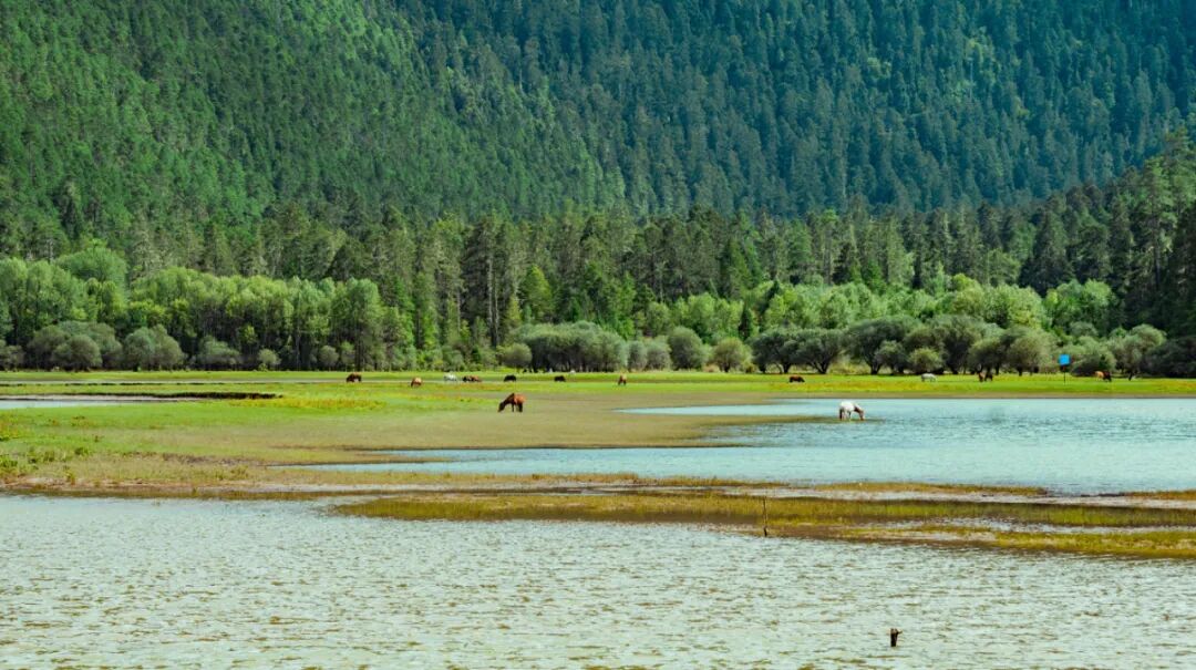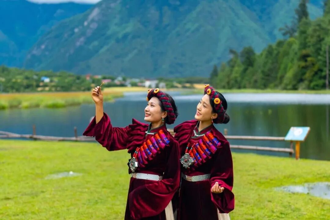 这里不仅是湖,更是嘎朗王朝的遗址所在地。湖虽然不大,但能将远处的雪山、周围的村庄和白云完美倒映在水中。拍照穿搭:建议穿红色或白色的长裙,在绿色的湖水和青稞田背景下非常出片 。