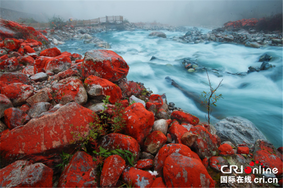 海螺沟红石滩的潺潺流水伴着红石静静流淌