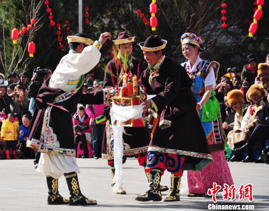 工布新年里,百姓们互相敬献象征吉祥如意的切玛。米林县旅游局供图
