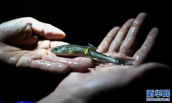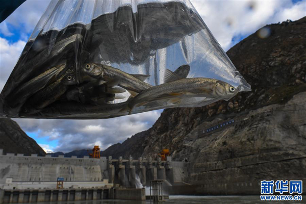 在西藏藏木水电站拍摄的放流鱼苗(摄影:普布扎西)