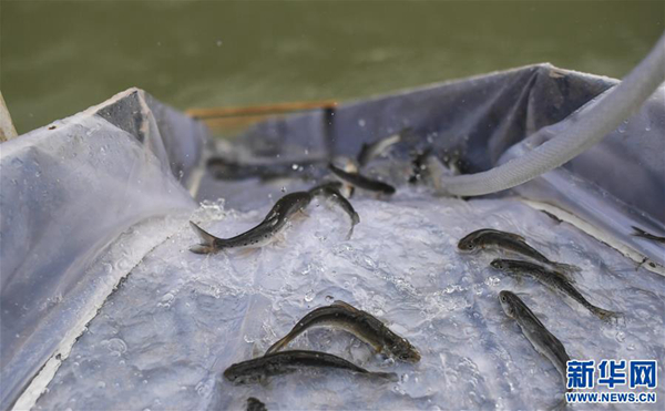 在西藏藏木水电站繁育的拉萨裸裂尻鱼(摄影:普布扎西)
