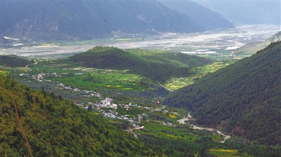 俯瞰林芝市尼洋河谷。加央卓玛 洛桑 摄