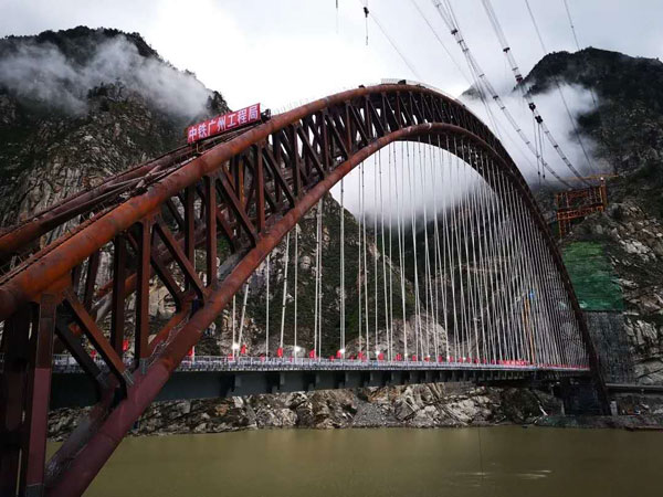 据悉,该桥钢管拱跨度430米,采用提篮结构,拱脚中心距离25米,拱顶中心距离7米,该种设计刚度大,稳定性好,抗风抗地震能力强。施工现浇混凝土的主梁吊架最大施工载重为680吨,可承载1700头成年牦牛。本次合龙的现浇主梁是藏木雅鲁藏布江双线特大桥直接承担铁路荷载的主要构件,为全预应力钢筋混凝土箱形连续结构,梁体全长517米,桥面宽18米,梁体自重19200吨。