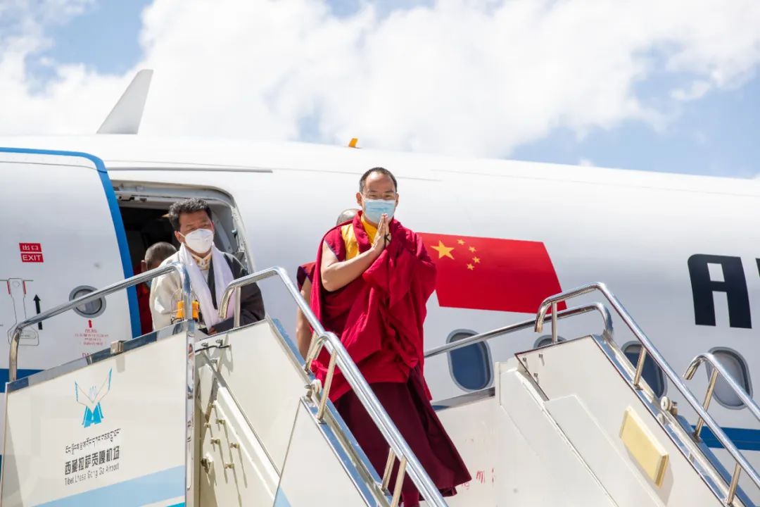 图为班禅于5月10日乘机抵达拉萨。记者 格桑吉美 摄