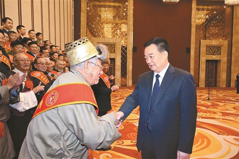 王君正代表自治区党委向受到表彰的先进集体和先进个人表示热烈祝贺,向各位老同志并通过他们向全区广大离退休干部致以诚挚问候,向全区广大老干部工作者表示衷心感谢。他说,自治区成立60年来,在党中央的坚强领导下,自治区党委团结带领全区各族人民顽强拼搏、努力工作,推动西藏各项事业发生了翻天覆地的变化,西藏同全国一道迈上了基本实现社会主义现代化的新征程。今天的西藏,政治安定、社会稳定、经济发展、民族团结、宗教和顺、生态良好、边防巩固、人民安居乐业,西藏经济社会发展的巨大成就饱含着一代又一代共产党人、一代又一代革命干部的艰苦奋斗,大家在西藏革命、建设、改革的各个历史时期作出了积极贡献,在你们的身上生动体现了“两路”精神、老西藏精神,激励着全区广大干部在新征程上奋勇争先。