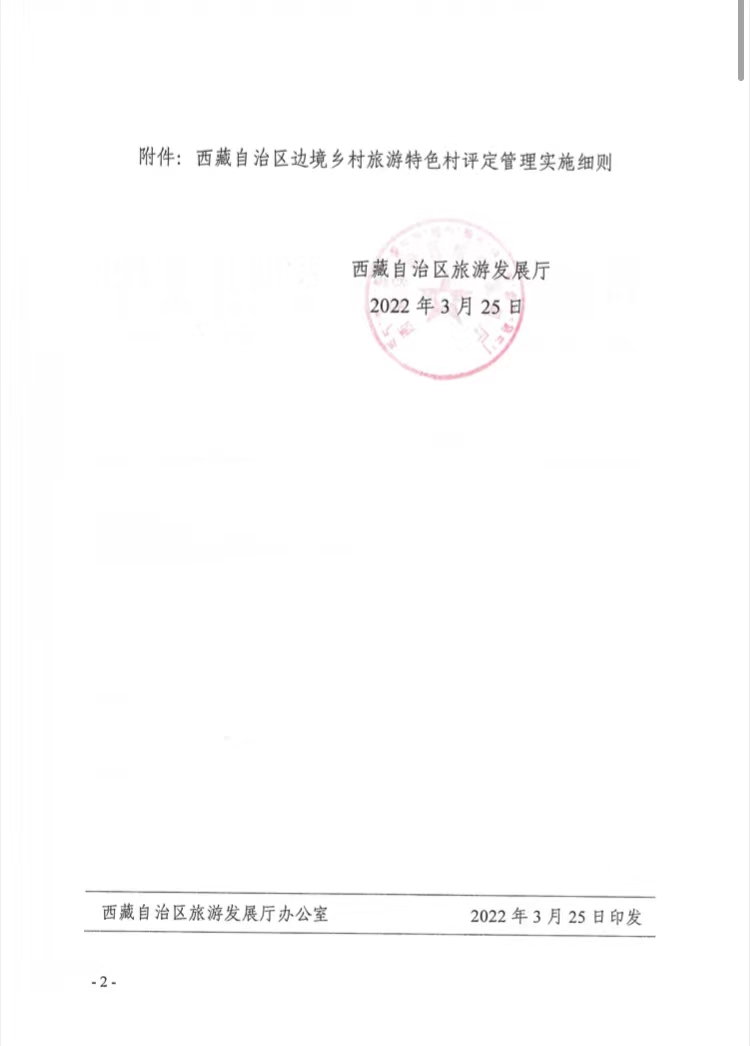关于印发《西藏自治区边境乡村旅游特色村评定管理实施细则》的通知---2022.3.22(2).docx