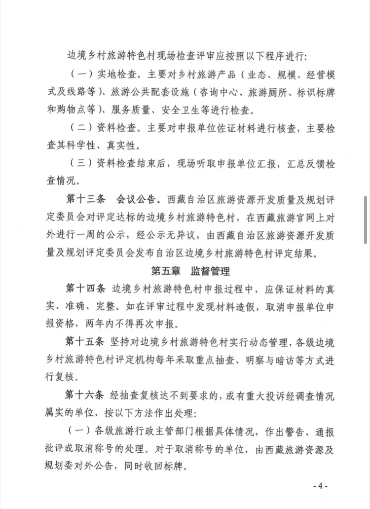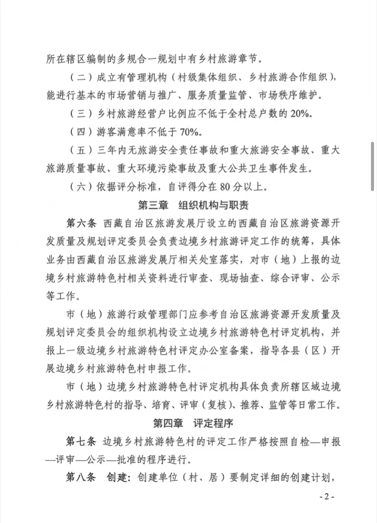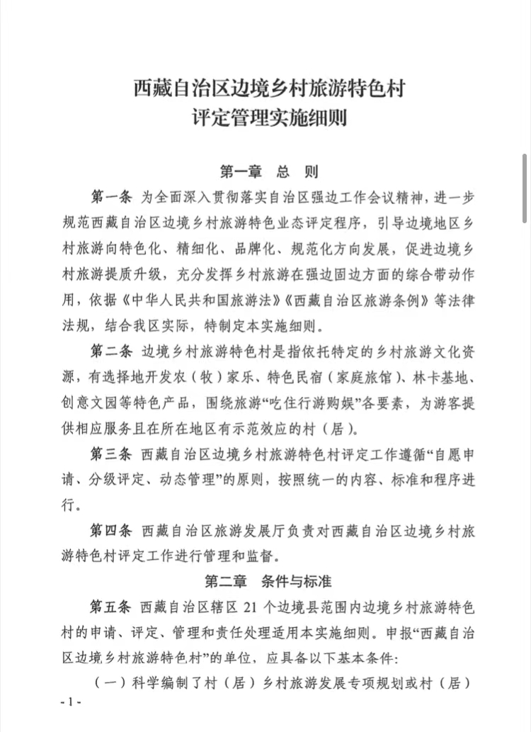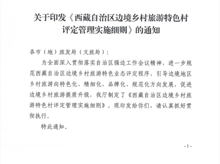 关于印发《西藏自治区边境乡村旅游特色村评定管理实施细则》的通知
