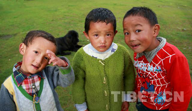 圣湖畔的山间谷地里,深藏着一个小小的村落——浪卡子县卡龙乡果巴村。记者到来之时,正值傍晚,村里几户藏式小院里升起了袅袅炊烟。雨后初霁,天边挂着一弯彩虹,湿润的空气里混合着青草和泥土的气息。见来了外人,几个村民家的小孩觉得新鲜,纷纷围拢过来,天真明亮的大眼睛盯着记者手里的相机,小声说着什么,眼神里透着好奇与羞涩。见此情景,记者用相机捕捉下了眼前的画面,不禁感叹:孩子们就如同这里的景色一样,天然而淳朴。