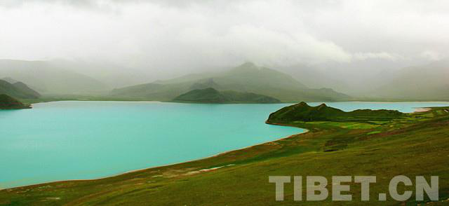 第二天,离开果巴村,回望圣湖羊卓雍错,雨季的羊湖就像含羞的姑娘,娇好的玉容深藏在如薄纱般的白雾下。当一缕阳光穿透浓雾照射在波澜不惊的湖面上,浓雾似开场前的帷幕般悄无声息地散去。不到片刻,清澈的湖水、巍峨的群山、如洗的蓝天融为一体,出现在我们眼前,陶醉、震撼、涤荡着我们的灵魂。