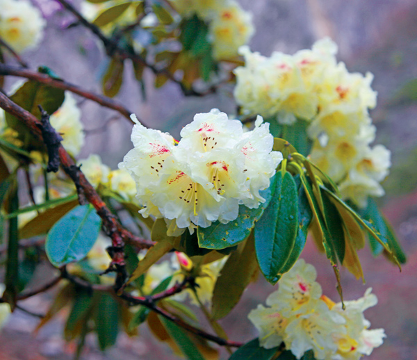 杜鹃花又被称为“映山红”,与古老传说“杜鹃啼血”有着千丝万缕的联系。所以,市场上最常见的杜鹃花多为红色。“在观察中发现,勒乡较早开放的杜鹃花颜色多为白、红两种颜色,而百花滩的杜鹃花开放的时间虽晚,但色彩更加丰富。”阿边说道。
