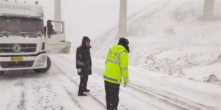 据西藏驻格尔木交警支队副支队长李平介绍,11月6日17时,沱沱河、昆仑山附近出现强降雪大风天气,能见度不足5米,存在极大的安全隐患。当日,该支队出动12名警力、3台警车在现场疏导指挥滞留在该路段的车辆。为保障过往车辆的安全出行,从11月6日15时30分起,格尔木交管部门在格尔木市南山口(乃吉沟)检查站对进藏车辆进行临时交通管制,待雪情缓解后放行。