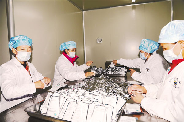 西藏罗宝藏药材开发有限公司员工在包装藏药。