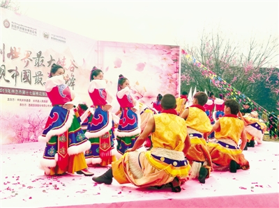 图为雅鲁藏布大峡谷桃花节开幕式表演现场。