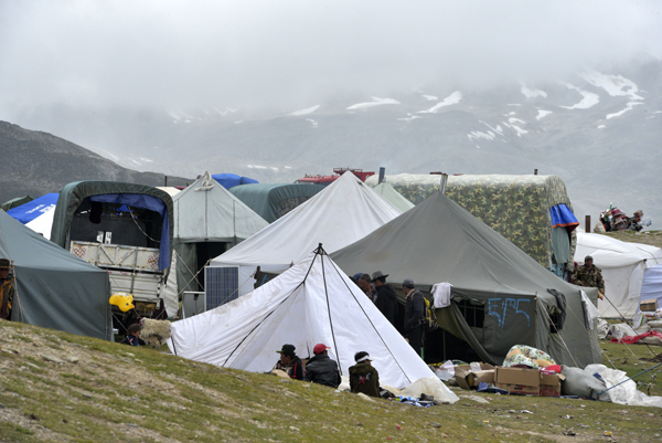 亚斯玛边贸市场位于皑皑冰川脚下,雅鲁藏布江上游支流之一的错娘河蜿蜒而过。时值8月,这里正在举行今年的季节性边贸活动,一个平坦的草坝子上扎着40多顶帐篷。站在这里,一头是一望无际的草场,一头是连绵横亘的喜马拉雅山脉。帕羊镇聂康村村党支部副书记、村委会主任次杰是他们村参加边贸活动的领队。他告诉记者,自己的爷爷少时在这里参加过贸易活动,给他留下了些许热闹的印象。清末民初,列强侵扰南亚各国,我国也倍受欺凌,仲巴往南亚的商贸往来中断。