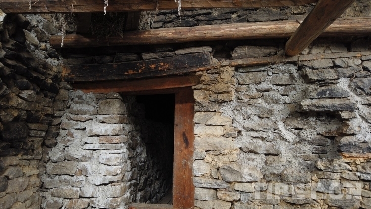 门巴族碉楼除了墙是用石块砌成的之外,几乎全是木料结构,接搭的地方用桦木而不是用钉,七八米高的门巴族住房可以保持百年不坏,由此可见门巴族原始而高超的砌筑技术。图为碉楼内部的木质接搭结构