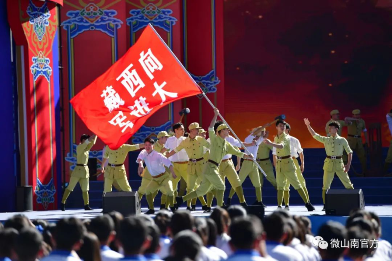 整场演出在舞蹈《唱支山歌给党听》中拉开序幕,演出分为《各族儿女心向党》《敢教日月换新天》《祝福美丽新山南》三个篇章,两地演员同台表演了歌曲、舞蹈、情景剧、民歌联唱等精彩节目,全面展示山南政治、经济、文化、社会、生态各领域取得的重大成就,给观众带来了一场别样的文化盛宴。