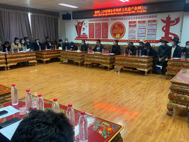 开班仪式结束后紧接着由县文旅局副局长次旦扎西同志为参训人员深入浅出、言简意赅的解读《日喀则市非物质文化遗产条例》及非遗传承、保护和申报方法等方面存在的问题困难进行解疑答惑,理清了非遗项目申报思路。