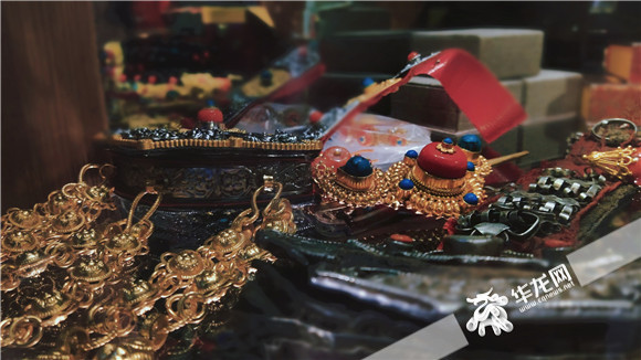 体验馆内陈列着藏族精美的配饰,游客可免费挑选试戴。 华龙网-新重庆客户端 李永欢 摄