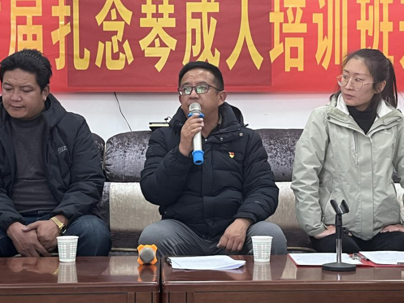 开班仪式上,首先由区文旅局免费开放负责人琼达对传统乐器扎念琴及担任本次培训的老师进行了简要介绍;其次,培训班罗布老师现场进行演奏,让在座学员感受传统民族乐器的魅力。会上,参训学员代表刚组次仁还进行了表态发言。最后,由区委宣传部副部长王丹丹同志作开班讲话。并强调:第一,认真对待,充分认识此次培训目的和重要性。开设扎念琴民族乐器培训班,既是进一步丰富辖区群众业余文化生活的有效途径,又是做好藏民族传统文化保护和传承的重要举措。通过此次培训,为下步组建羊达特色民族乐器演出队伍奠定基础,以实实在在的工作成效不断丰富和繁荣羊达的文艺文化事业。第二,珍惜机会,增强培训学习的主动性和积极性。要端正学习态度,认真听讲、不懂就问、虚心请教,理论联系实际勤于练习,培训结束后回家要巩固练习,搞好学习的消化吸收,努力把自己所学知识转化为服务基层、服务群众的本领。第三,严明纪律,确保培训学习取得良好效果。在培训期间,各位学员必须严格遵守培训时间和《扎念琴培训班管理制度》中的各项规定,严格遵守培训纪律。每届培训结束后,堆龙德庆区委宣传部、区文旅局、街道新时代文明实践所(综合文化站)将组织开展扎念琴培训成果汇报会,邀请专业老师担任评委,对合格人员颁发培训结业证书。