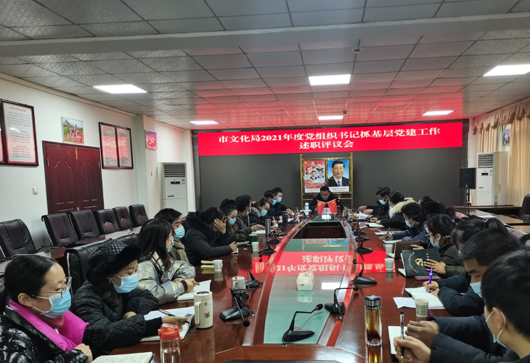 12月24日下午,日喀则市文化局党组召开2021年度党组织书记抓基层党建工作述职评议会。会议依次听取了机关党总支以及3个党支部的党组织书记抓党建工作述职报告,进行了民主测评。市委宣传部副部长、市文化局党组书记普次仁同志主持会议并部署下步工作。