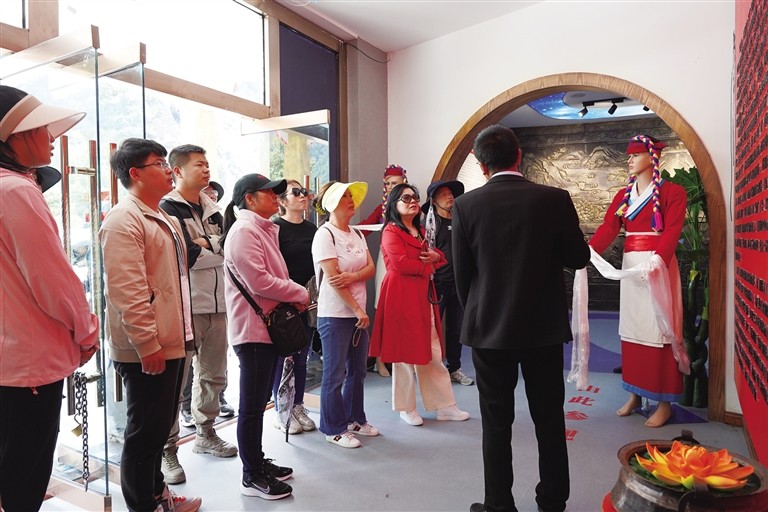 “踩线团”嘉宾参观门巴民俗文化陈列馆。实习记者 余婷婷 摄