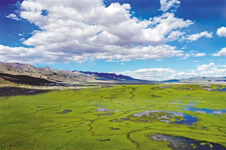 当雄县阿热湿地位于当雄县城东北侧,南侧紧邻109国道,湿地总面积约9668.42公顷,基本以草本沼泽为主。湿地内主要野生动物有黑颈鹤、金雕、高山秃鹫、赤麻鸭、斑头雁、赤狐、藏狐等;植物有芦苇、西藏嵩草等。