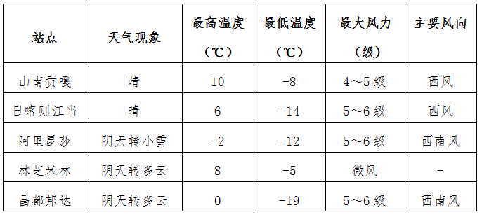 预计 |明天白天:阿里、日喀则西南部和林芝阴天有小雪,部分高海拔山区有中到大雪