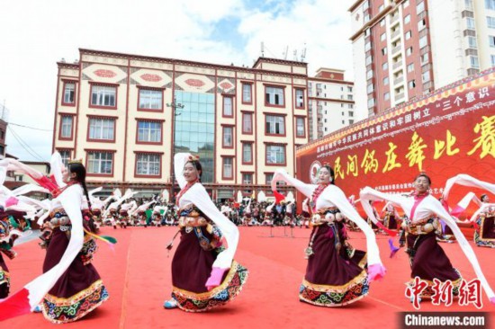 8月20日上午,西藏昌都市第九届三江茶马文化艺术节民间锅庄舞比赛在茶马广场举办,来自昌都市各县(区)的16支队伍参赛。