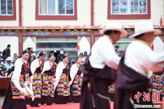 图为昌都市民间锅庄舞比赛现场。贡嘎来松 摄