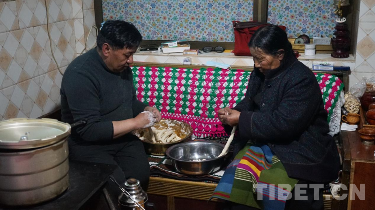 图为次仁德琼的家人正在做“古突” 摄影:张晓琪