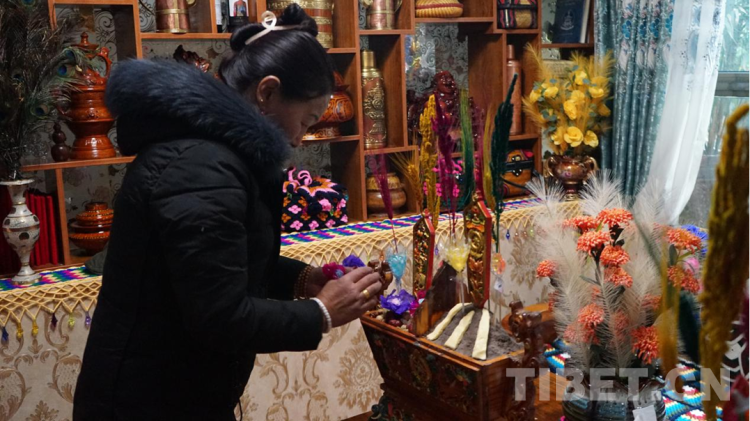 图为次仁德琼在装饰切玛盒 摄影:张晓琪