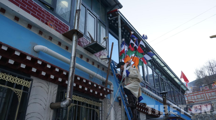 图为次仁德琼的家人正在更换新的“塔觉” 摄影:张晓琪