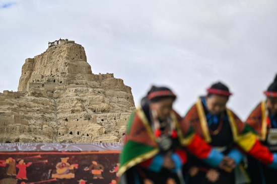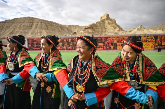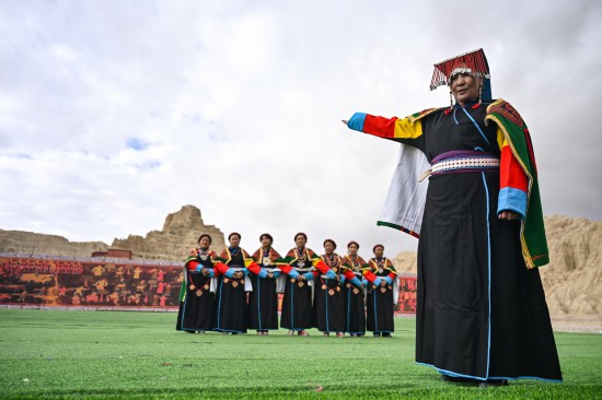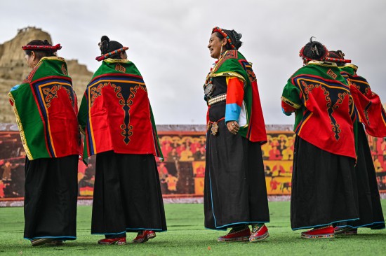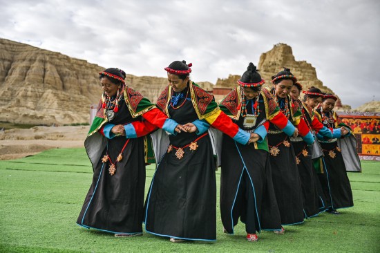 “宣舞”起源于札达县,是西藏阿里民间传统舞蹈。“宣舞”融合藏戏、舞蹈、说唱等主要的藏民族民间艺术,内容涵盖藏民族宗教、礼仪、风俗、节庆等各方面的内容。2008年,“宣舞”入选第二批国家级非物质文化遗产名录。新华社记者 孙瑞博 摄