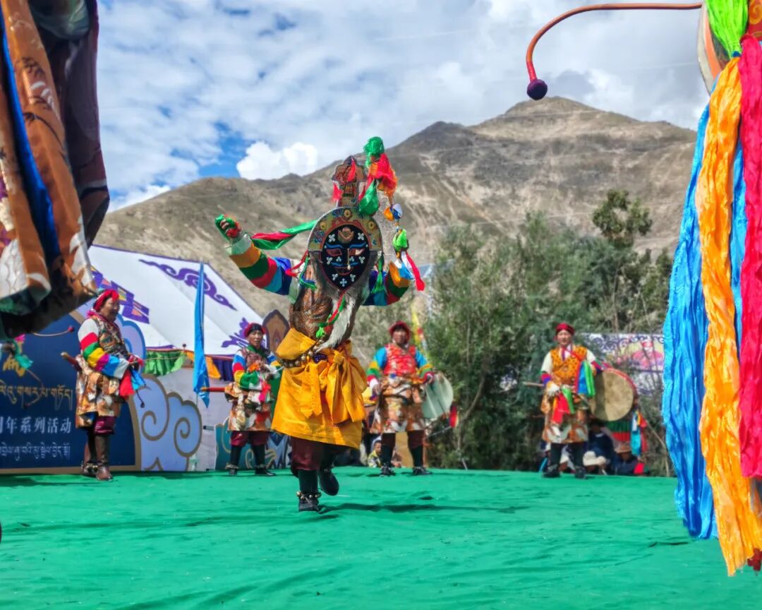 演出中,传统节目“卓舞” 震撼开场。舞者身着华丽盛装,手持鼓槌,以刚劲有力的舞姿、激昂磅礴的鼓点,将藏族传统文化的独特魅力展现得淋漓尽致,让现场观众深切感受到民族文化的深厚底蕴,赢得阵阵热烈掌声。