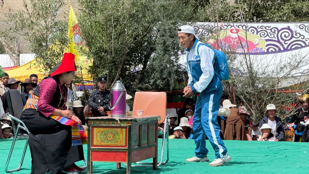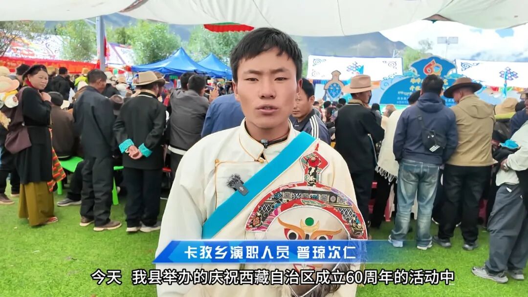大家好!我是来自秋木乡的一名演职人员。为热烈庆祝西藏自治区成立60周年,我们秋木乡特意带来了 “拉孜堆谐” 表演。我们格外珍惜如今的幸福生活,下一步,我们会用心做好民族团结工作,始终牢记听党话、感党恩、跟党走,努力为建设幸福南木林贡献自己应有的力量。