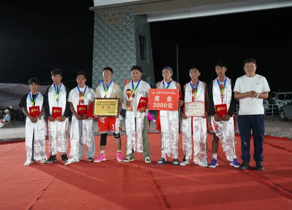 8月28日迎来赛事收官日,在季军战中,学尼A队对战嘎巴队,学尼A队凭稳守高效进攻夺得季军;在冠亚决赛中,桑久队、雄久队高强度对抗,桑久队凭借关键战术突破与稳定发挥小幅领先摘冠,雄久队获亚军。当日下午,竹瓦根镇雄久村达巴组篮球场举行闭幕式颁奖,冠军桑久队、亚军雄久队、季军学尼A队分别获得5000元、4000元、3000元奖金以及定制奖杯、奖牌及荣誉证书,并评选出道德风尚奖1个、全场MVP1人和优秀教练员1人,分别奖励1000元、500元奖金。球员合影留念,现场掌声欢呼声不断,竞技热情与集体荣誉感感染众人。