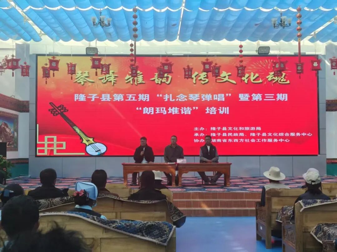 2025年10月10日下午,隆子县第五期“扎念琴弹唱”暨第三期“朗玛堆谐”培训在隆子县特困集中供养中心正式开班。此次培训由隆子县文旅局、县民政局、县文化综合服务中心联合主办,精准聚焦特困集中供养中心老年人及护理员等干部职工,共35人参与,将传统艺术服务与特困群体关怀深度结合。