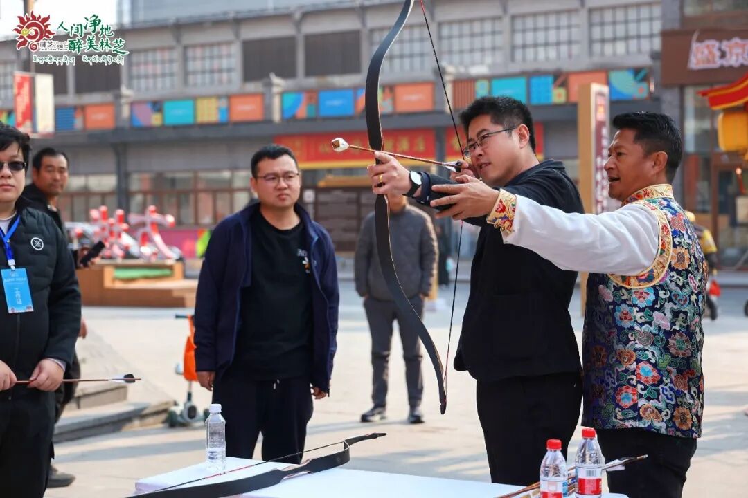活动现场沉浸式体验区成为市民打卡热点。书法体验区,林芝藏文书法老师与沈阳毛笔书法老师联袂创作,将汉藏双语书签作为“林芝礼物”赠予市民,见证文化共生之美;工布响箭区,让大家亲身感受响箭破空的豪迈与激情;亲子涂鸦区,家长与孩子共同描绘林芝自然图景;林芝非遗服饰体验区,拍照定格独特民俗记忆。此外,林芝主题摄影展、林芝文创市集和农特产品一站式展现林芝文旅资源及物产风情,街头魔术互动与文旅集章打卡活动更是激发了市民的参与热情。