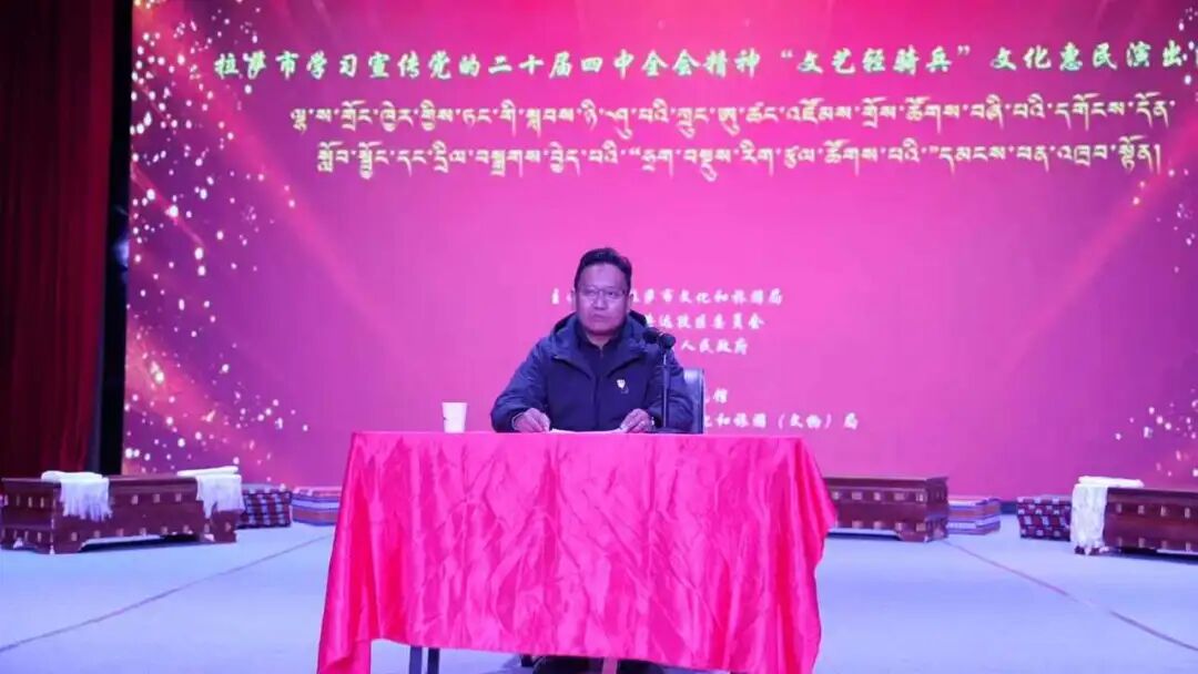 为推动党的二十届四中全会精神深入基层、浸润民心,结合庆祝西藏自治区成立60周年,12月2日,由拉萨市文化和旅游局主办的“文艺轻骑兵”文化惠民演出达孜区站在达孜区群众文化活动中心圆满举行。拉萨市文旅局二级调研员和继香,达孜区副区长益西曲珍,区政协二级调研员罗布次仁出席活动,300余名各族干部群众观看演出。