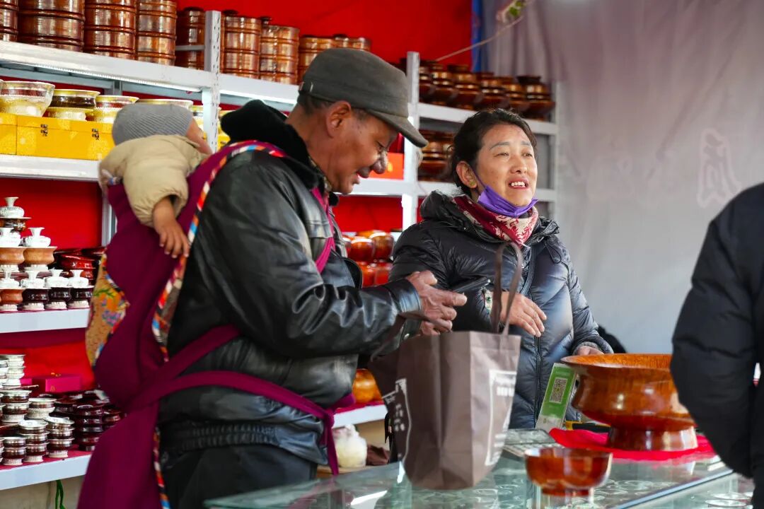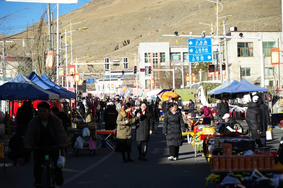 游康马物交会,赏边城人文景。在县城和涅如堆乡边贸市场物资文化交流会现场人潮涌动,气氛热烈,各类展位商品琳琅满目,康马牛羊肉、酥油、枸杞、野生香料等特色农产品纷纷登场,唐卡、卡垫、氆氇等手工艺品深受群众青睐。来自县内外的民族手工艺品、日用百货、服装服饰、家电家具等,吸引着络绎不绝的群众驻足选购。消费促进政策同步发力,通过满减优惠等形式,激发群众消费热情,有效拉动县域消费增长。
