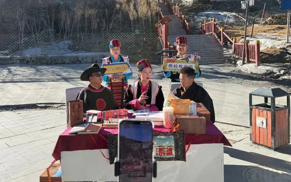 活动于12月24日至26日集中开展,组织6场高质量直播,对全县5个乡(镇)进行全景式深度推介,把镜头搬到非遗工坊、旅游景点、特色产品制作室等。直播创新采用“局长+网红+乡土专家”的协同讲解模式,县文旅局副局长权威解读政策、推介精品线路;本土网红“艾 普扎”以网感语言活跃氛围、介绍曲松特色产品、实地体验;乡镇干部或文化能人则深入讲解历史民俗,确保了内容的专业性与亲和力。行程设计精心,依次走进邱多江乡(色吾温泉康养)、堆随乡(洛村石窟与民俗)、下江乡(丁肉美食与服饰)、罗布沙镇(江南朱麦沙)及曲松镇(慈成藏香非遗)等,每场直播均有机嵌入5个定制文艺节目,实现了自然风光、历史文化、非遗技艺与乡土风情的立体化呈现。