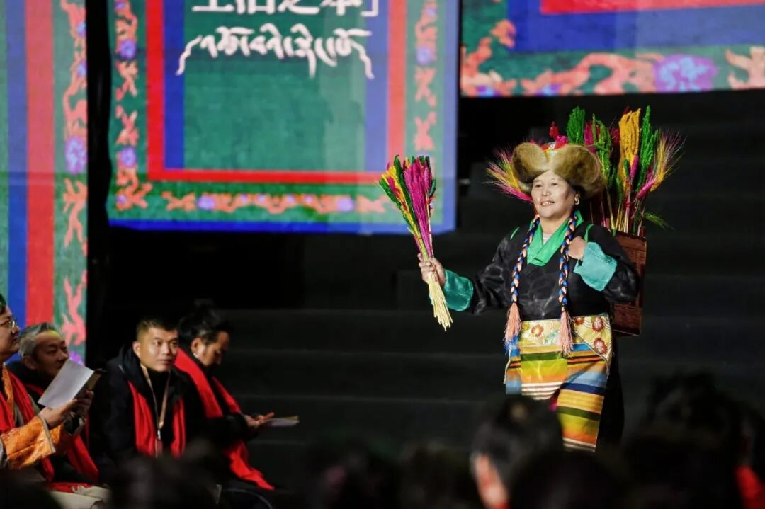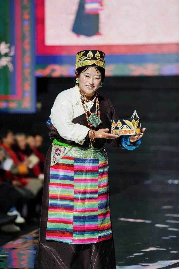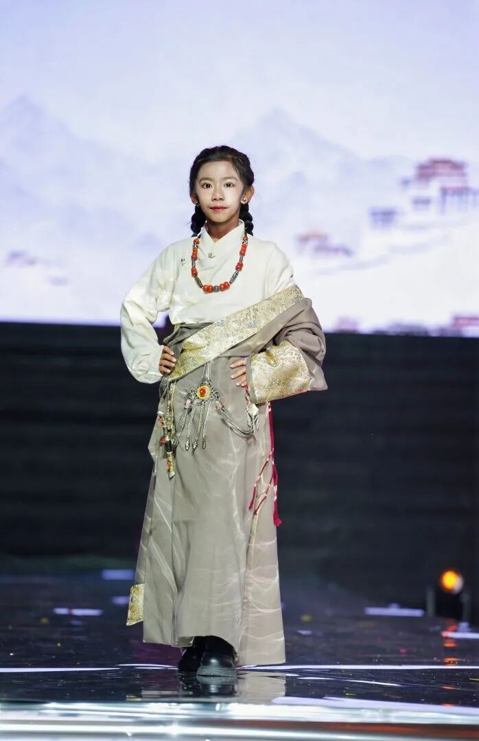 开幕大秀在西藏美术馆举行,以“传承与生活”为叙事主线,呈现《传统之根》《生活之本》《希望之花》三个情感递进的篇章。现场不仅展出来自拉萨各县(区)的代表性服饰,还特别邀请少儿模特登台,生动展现文化在新生代中的鲜活传承。此外,来自拉萨各县(区)的农牧民女性代表也走上T台,以原生态的“村‘T’秀”形式,呈现服饰在日常劳动与生活中质朴动人的魅力。