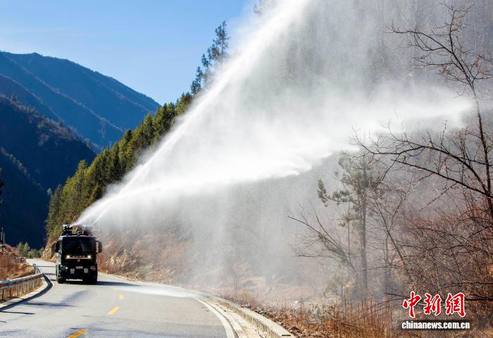 为切实防范冬季火灾风险,筑牢西藏日喀则市亚东县生态安全屏障,9日,西藏亚东出入境边防检查站主动作为利用站内车辆对县域内多处冬季植被干燥、火灾隐患突出的重点区域,开展洒水增湿作业。