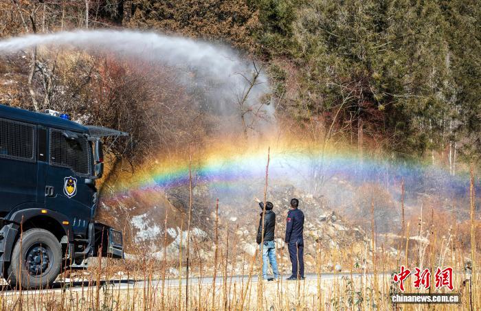 图为西藏亚东出入境边防检查站开展洒水增湿现场。李锦辉 摄