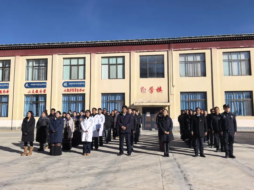 升国旗凝初心。活动伊始,全体人员肃立,举行升国旗、奏国歌仪式。鲜艳的五星红旗在卡达乡的蓝天下迎风飘扬,进一步激发了卡达乡干群的爱国热情与守边固边责任感,让中华民族共同体意识在每个人心中深深扎根。