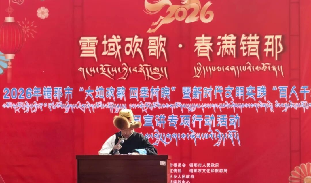 为进一步铸牢中华民族共同体意识,扎实推进固边守边富边强边,丰富群众精神文化生活,增强群众获得感幸福感安全感,1月26日,由错那市委、市政府主办,市委宣传部、市文化和旅游局承办,卡达乡人民政府、市艺术团协办的2026年错那市“大地欢歌 四季村晚”暨新时代文明实践“百人千场进万站”冬闲宣讲活动在卡达乡顺利举办。市政协党组书记、主席洛旦、市委常委、宣传部部长扎西央金、相关单位负责人、卡达乡党政领导及各村负责人出席活动。
