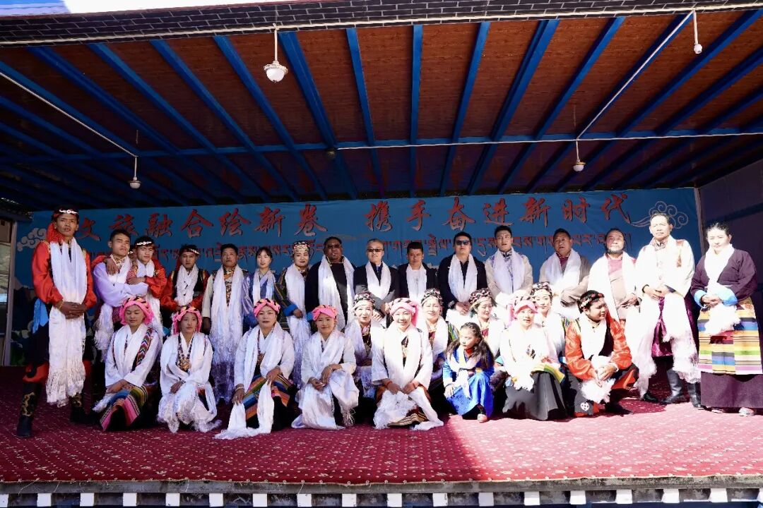 文艺表演环节亮点纷呈,县峡谷乐队与拉康社区行政村文艺演出队携手登台、联袂献艺。整场演出以承载着拉康群众殷切期盼的《共赴新程》拉开序幕,13个精心打磨的节目紧扣“乡土情怀”与“发展新篇”核心主题,涵盖舞蹈、独唱、民俗展演等多元形式。既有彰显拉康传统文化底蕴的经典歌舞,用灵动舞姿与悠扬旋律传递民族风情;也有聚焦镇域发展变迁的原创佳作,以真挚情感勾勒拉康日新月异的发展面貌。每一个节目都饱含着演员对家乡的深情与对美好生活的赞颂,精彩的演绎让现场掌声、欢呼声、喝彩声交织回荡,气氛热烈非凡。