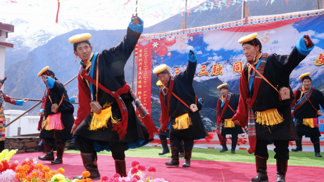 首先,伴随着悠扬的旋律和铿锵的节奏,顶礼舞、萨卓舞等本土非遗表演队伍盛装亮相。演员们身着精美传统服饰,踏着富有地域特色的节拍翩然起舞,舞姿舒展大气、韵味悠长,每一个动作都饱含着对传统文化的坚守与热爱,充分展现了非遗文化的独特魅力和新时代农牧民群众昂扬向上的精神风貌。精彩的表演轮番登场,掌声、喝彩声此起彼伏,让在场群众与游客近距离感受非遗之美、文化之韵,进一步增强了文化自信与民族自豪感。